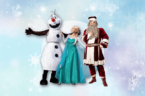 Personažai: Kalėdų Senelis, princesė Elza ir besmegenis Olafas.