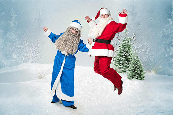 Personažai: Kalėdų Senelis ir Santa Klausas.